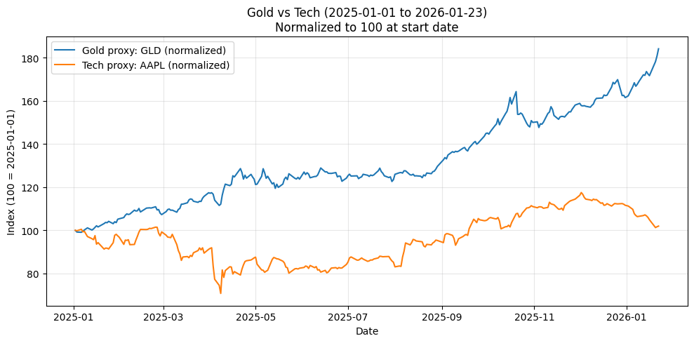 While tech stocks dick around, spot gold just tagged fresh all-time highs near $4,966/oz this week.